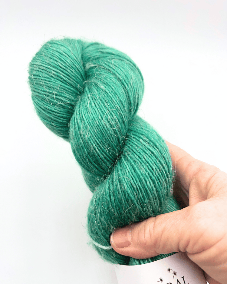 The linen can be seen very subtly throughout the skein as it resists the dye giving the overall yarn a heathery look but with the feel of pure luxury.
