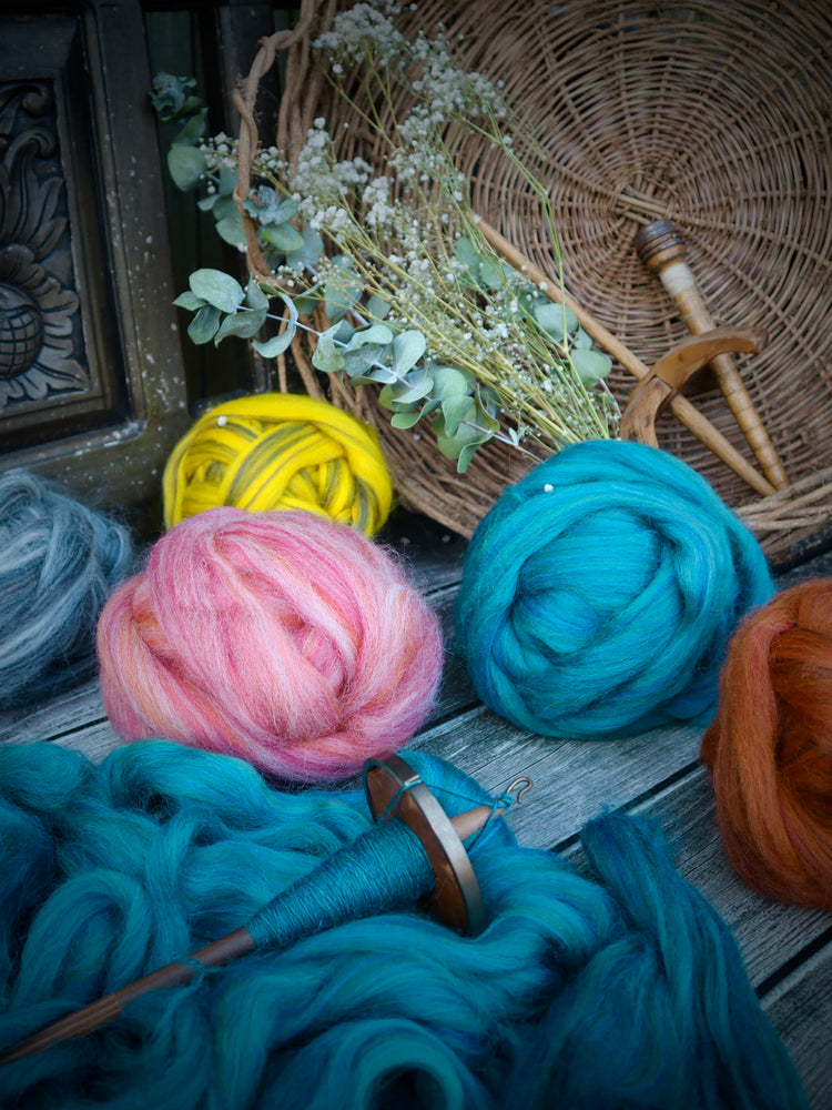 Fibres will be based around different wool breeds but may include silks, plant fibres, plant-based fibres, or luxury additions — always chosen for how they spin and how they feel in the hands.